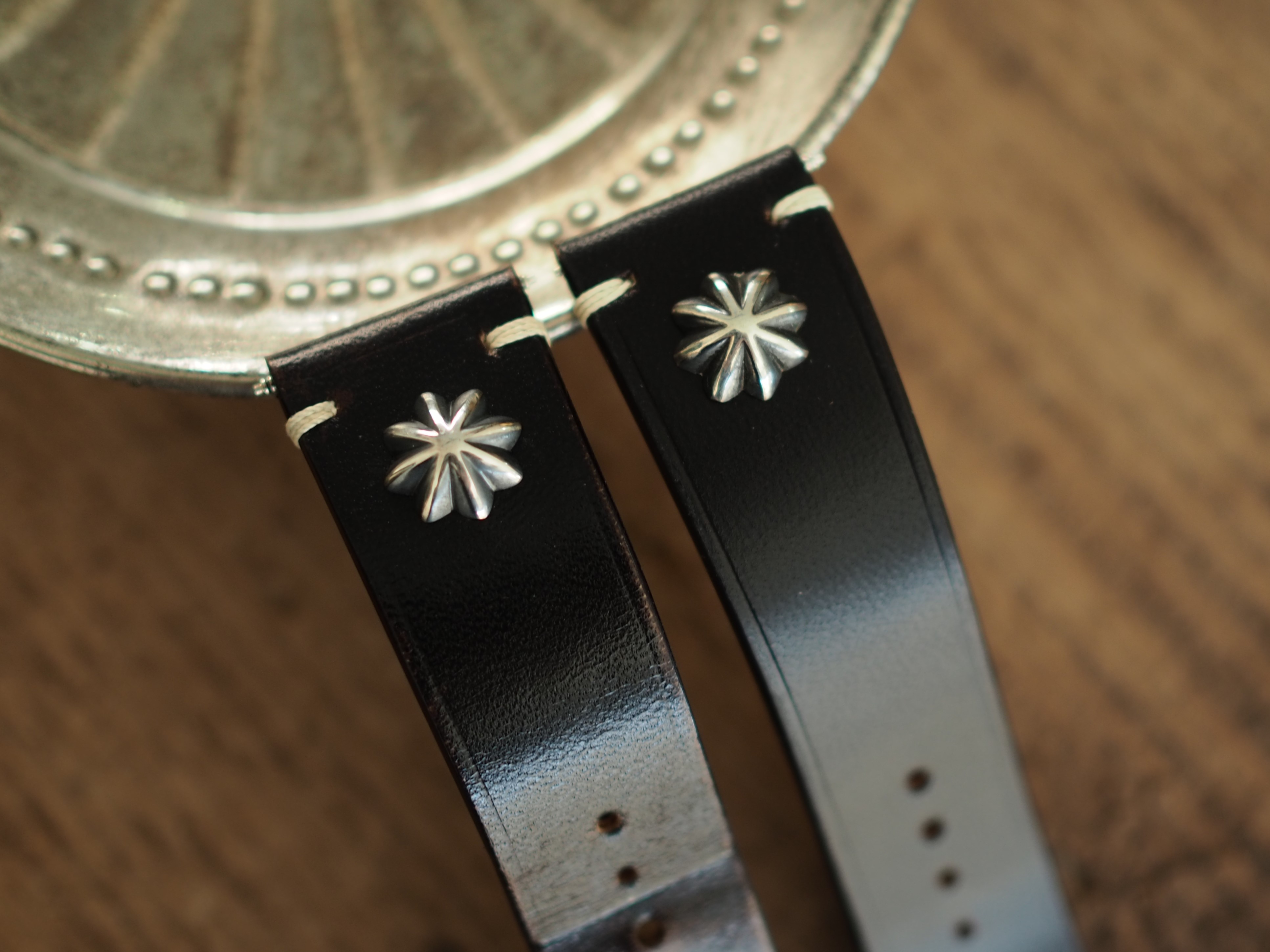 以上、【SILVER CONCHO 】Type:CLASSICシリーズのご紹介でしたがいかがでしょうか?簡潔に、と思って書き始めたのですが、語りたいことが多すぎてこんなに長くなってしまいました…。細部までこだわって仕立てており、市販品にはないスペシャルな雰囲気をもつベルトですので、愛用の腕時計のカスタムにきっと一役買ってくれます。是非ご注文・お問合せをお待ちしております!