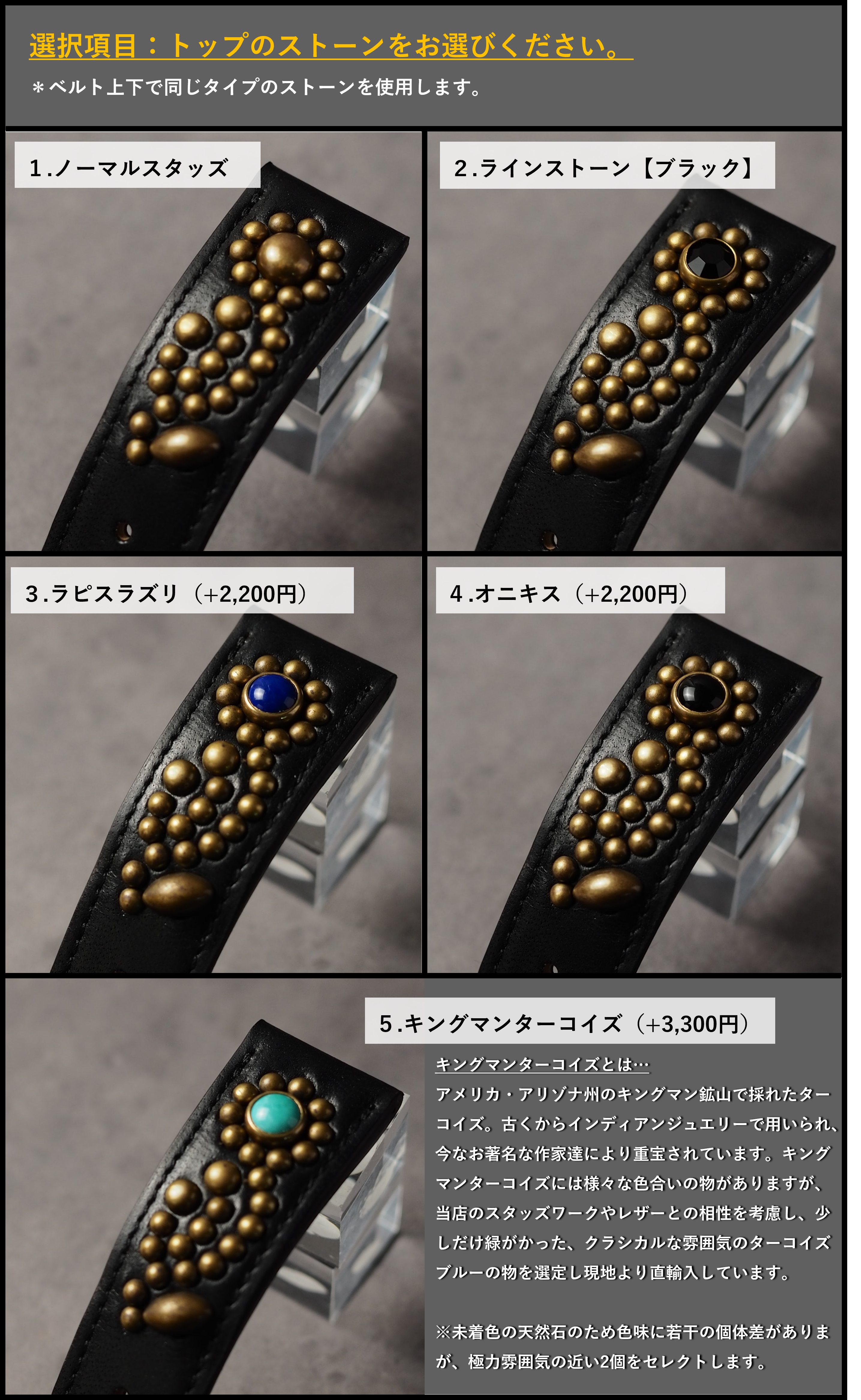 ・アンティークシルバー/ブラスのスタッズは、薬品を用いた燻し加工が施されている為、生産ロットにより濃淡差が生じる場合がございます。