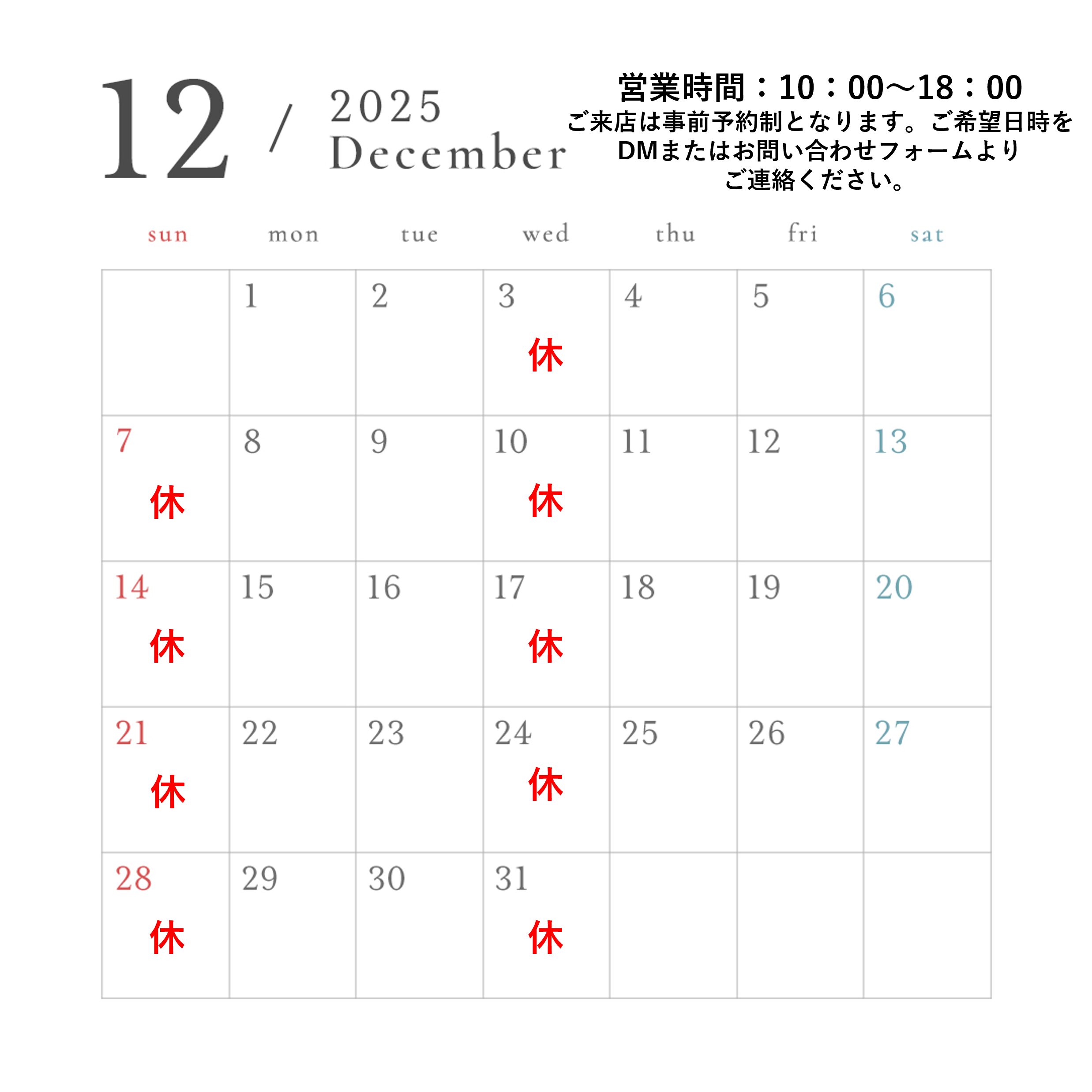 ご来店は事前予約制となります。お手数ですが「お問い合わせフォーム」または「インスタDM」よりご連絡いただき、その際ご来店希望日時もあわせてお知らせ下さい(例:〇月△日の14時 等。そこから1時間の枠をお取りさせていただきます)。空き状況を確認後、お返事をさせていただきます。