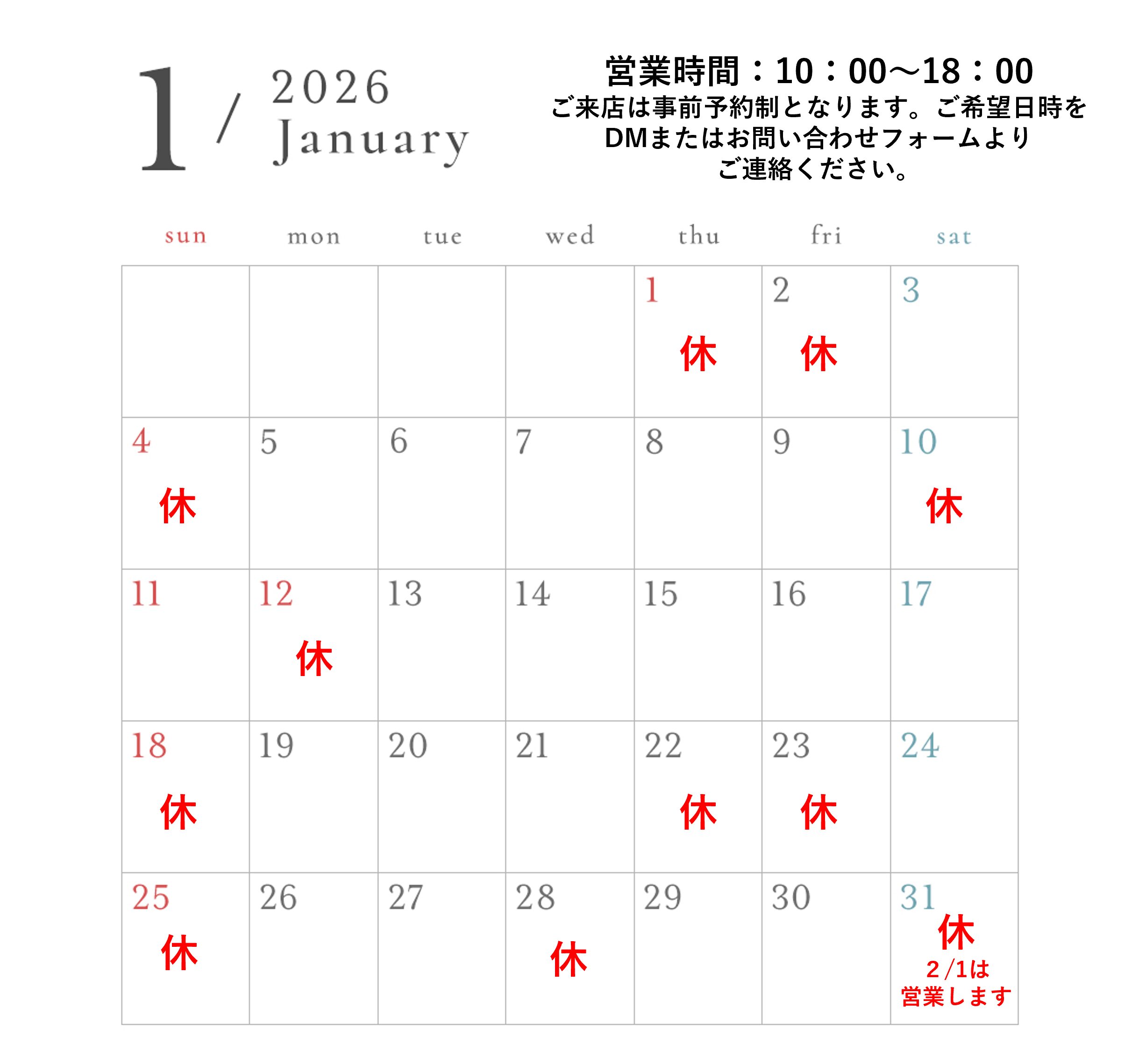 ご来店は事前予約制となります。お手数ですが「お問い合わせフォーム」または「インスタDM」よりご連絡いただき、その際ご来店希望日時もあわせてお知らせ下さい(例:〇月△日の14時 等。そこから1時間の枠をお取りさせていただきます)。空き状況を確認後、お返事をさせていただきます。