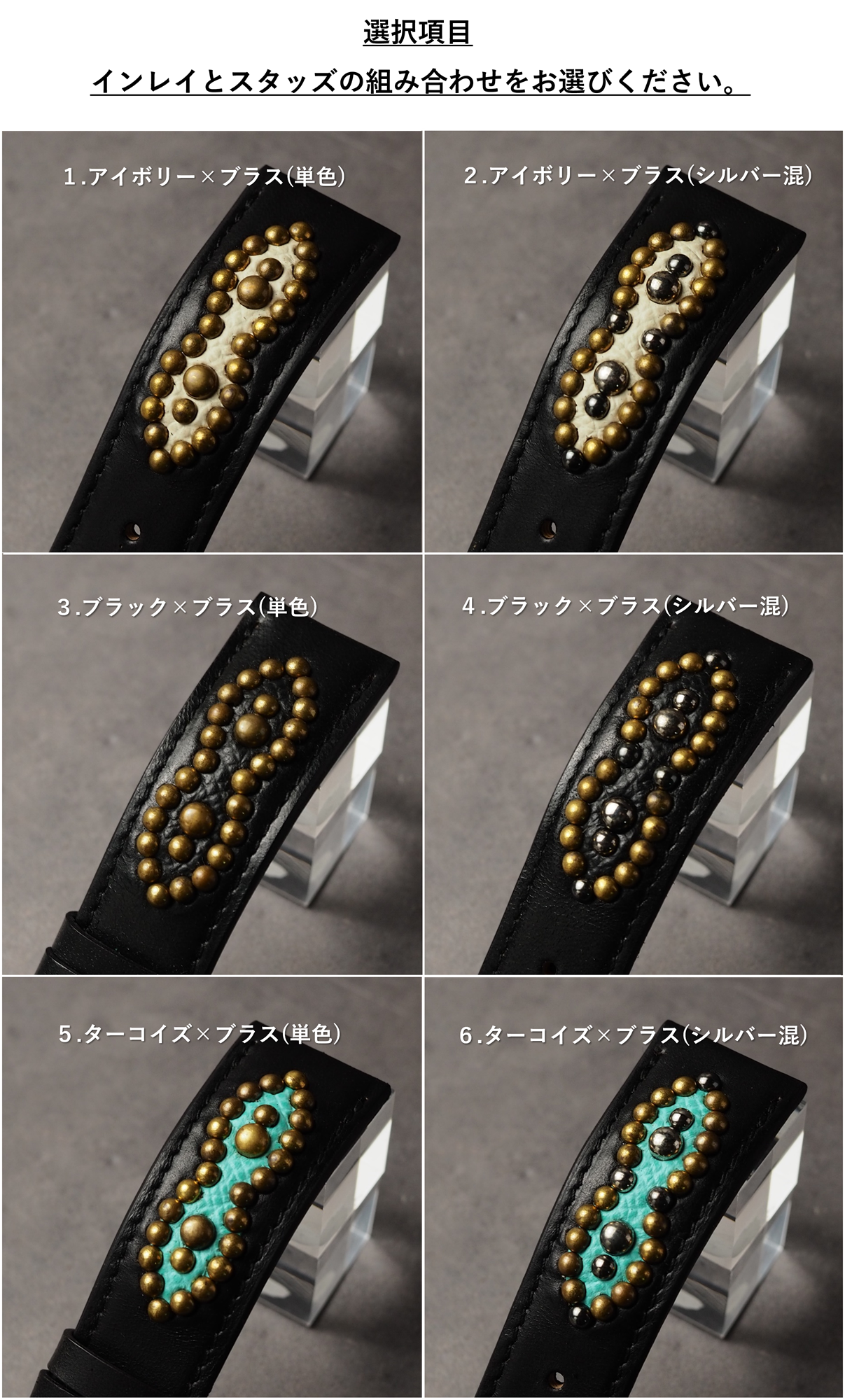 ・アンティークシルバー/ブラスのスタッズは、薬品を用いた燻し加工が施されている為、生産ロットにより濃淡差が生じる場合がございます。